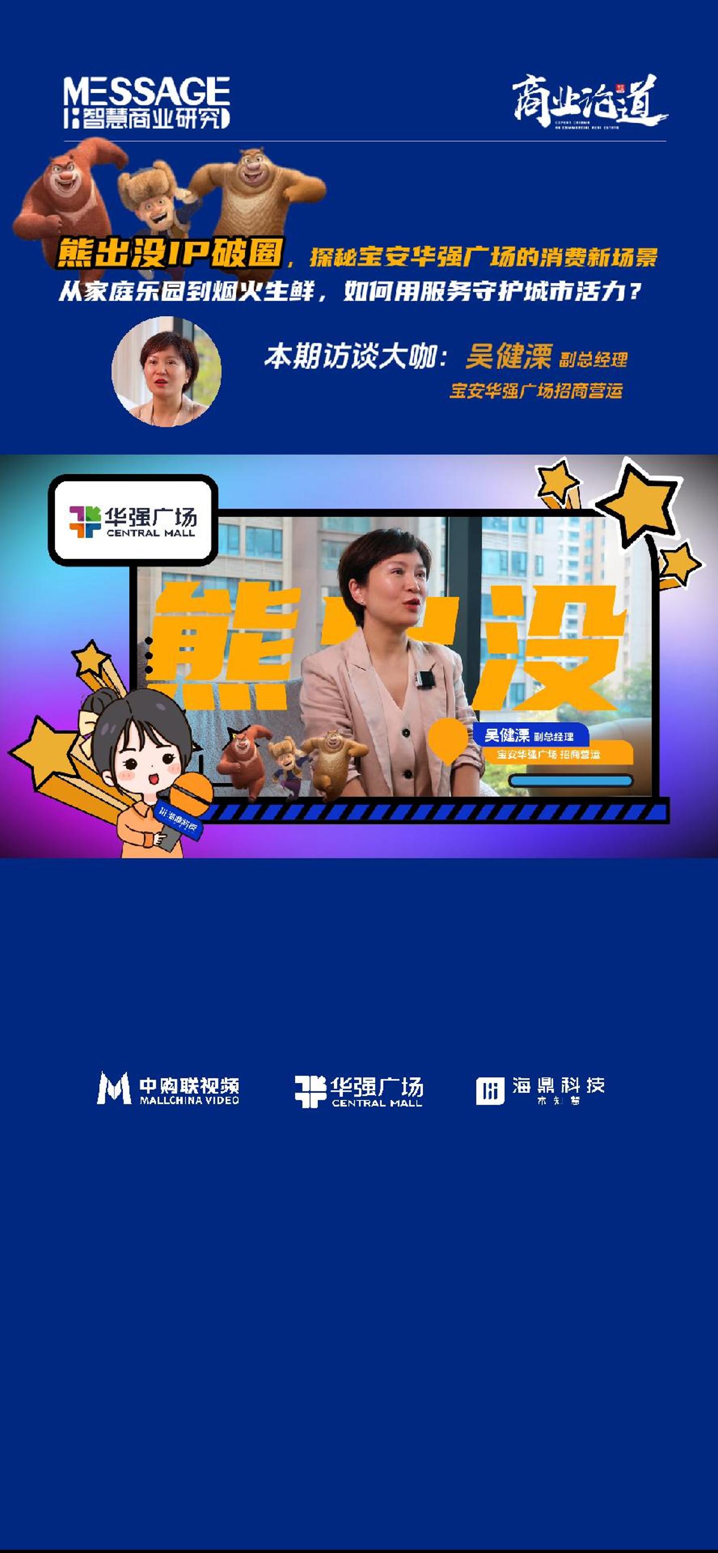 ??「熊出沒IP破圈,探秘寶安華強廣場的消費新場景」[讓我看看] ??從家庭樂園到煙火生鮮,如何用服務(wù)守護城市活力?[疑問] [慶祝]本期訪談大咖:吳健溧 寶安華強廣場招商營運副總經(jīng)理